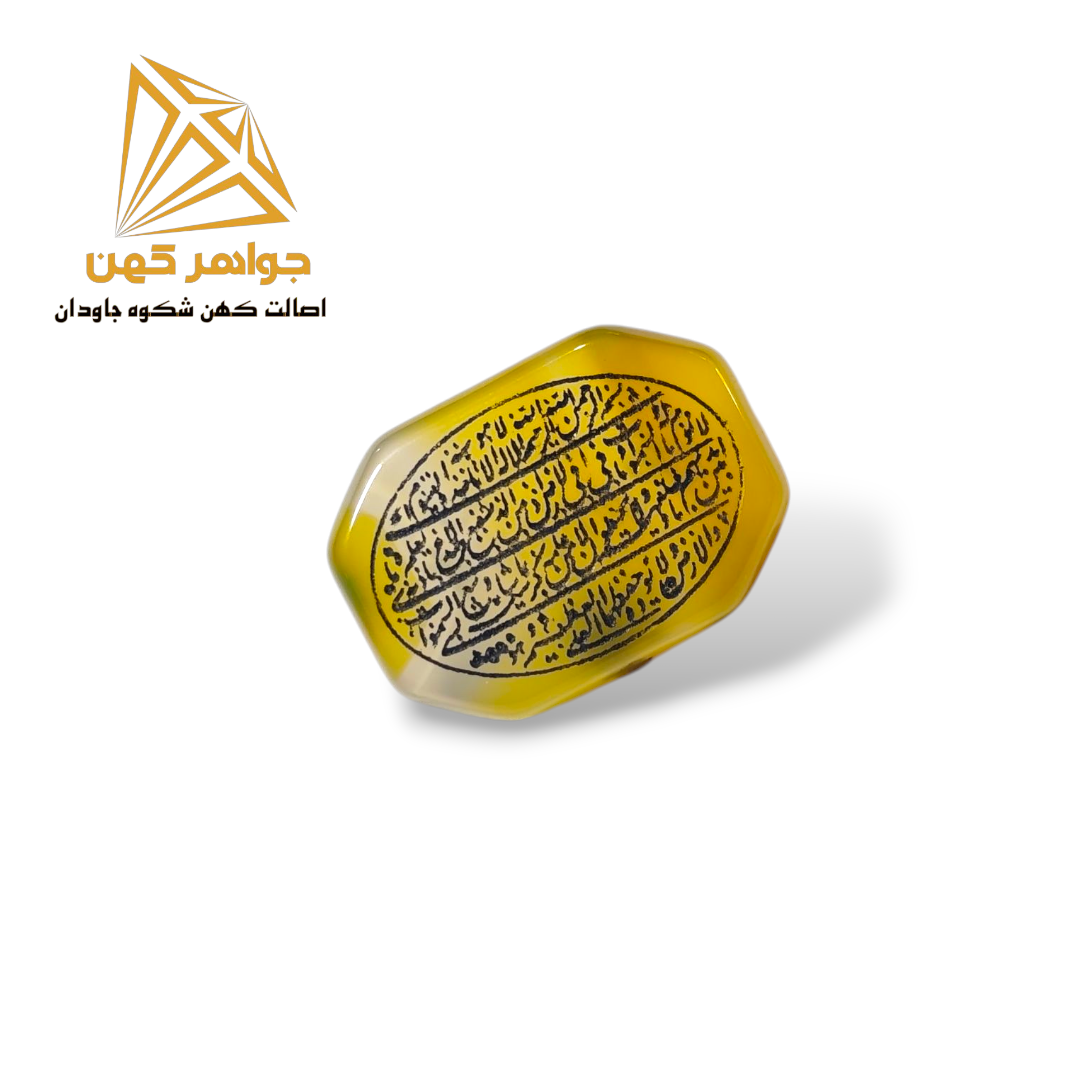 روی این سنگ، آیتالکرسی با ظرافتی کمنظیر حک شده و پشت آن دعای مخصوص شرفالشمس نقش بسته؛ ترکیبی که انرژی محافظتی سنگ را چند برابر میکند و آن را به یکی از قویترین نگینها برای همراه داشتن تبدیل میسازد.